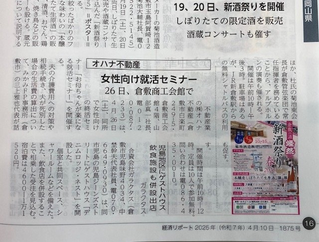 『経済リポート』(2025 4.10)1875号でご紹介いただきました。 2025年04月07日(月) 公開 『経済リポート』(2025 4.10)1875号でご紹介いただきました。 いつもありがとうございます。 一覧ページへもどる